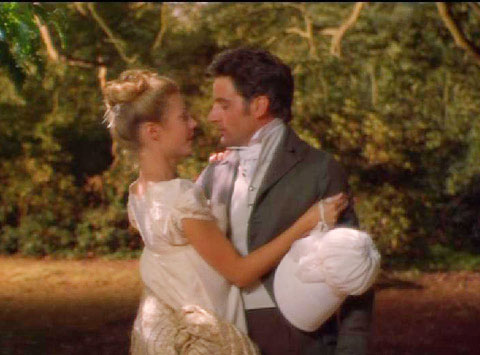 Once again, it is Harriet who catalyzes Mr. Knightley’s proposal. In recreating Harriet in her own image, Emma has created a monster. Just as Lady Catherine de Bourgh parodies Darcy’s pride and Elizabeth’s prejudice, exorcising their vanity and freeing them to become humble, as I have argued elsewhere (“Famous Last Words”), so, by becoming uppity herself, Harriet exorcises Emma’s arrogance and frees her to become grateful. Earlier, Emma has thought, “‘[H]appy the man who changes Emma for Harriet’” (269), but she finally realizes, “Mr. Knightley must marry no one but herself!” (408). Emma feels no regret at disinheriting poor little Henry. After eating Mr. Knightley’s strawberries, Emma might have thought, “To be mistress of Donwell Abbey might be something!” Just as courtship is the key word in Volume One, so blunder is the key word of Volumes Two and Three, and heart the key word of the novel’s conclusion. Though Harriet believes Emma “‘can see into everybody’s heart’” (404), Emma is “‘doomed to blindness’” (425) and cannot even see into her own. Mr. Knightley’s censure triggers as dramatic a turning point in her self-knowledge as does Darcy’s letter to Elizabeth. Thereafter, the word heart, attributed to Emma’s thoughts, is repeated frequently—and appropriately for a denizen of Hartfield. One could argue that, just as Elizabeth Bennet has been in love with Mr. Darcy from the outset, so Emma has been, unbeknownst to herself, in love with Mr. Knightley. The proposal scene involves a dance of comic misunderstanding that is resolved when Emma overcomes her egotism and becomes a true friend to Mr. Knightley. As Bruce Stovel observes, “Emma’s repeated use of the word ‘friend’ . . . signifies her new determination to be selfless, her awakened gratitude for his friendship” (65). Believing Mr. Knightley to be about to confess his love for Harriet, Emma silences him but then reverses herself and, proposing another turn in the garden, offers to hear him. Just as she invited him to ask her to dance, she invites him to ask her to marry him, albeit unwittingly. But is it unwitting, or is it witting? Remember, Emma has just assured him that she has never loved Frank Churchill. Is that so different from Elizabeth’s thanking Darcy for aiding Lydia, thus prompting the renewal of his proposals? Certainly, Emma takes the initiative, although Paltrow and Beckinsale both play the scene to suggest that Emma invites Mr. Knightley’s proposal inadvertently.