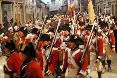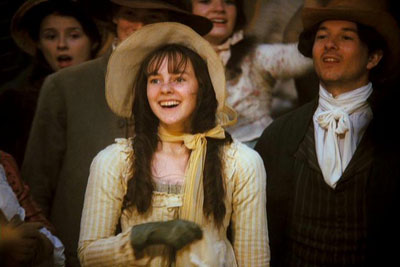 exuberant parade through Meryton, watched excitedly by a giggling and waving