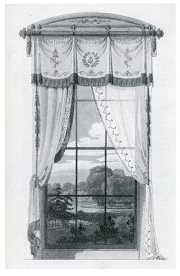 Each depended on an instrumental and commercial understanding, or appreciation, of the historical object as source of various species of material and symbolic capital and on a conviction of the relevance of both the past and the distant to contemporary practice.4 And those bibliographic combinations of visual and textual data derived from, but also increasingly exercised, the expanding reach of British initiative. The new geographies of economic activity and cultural acquisition, plus individual and collective identity-making, are nicely summarized in the dedication Thomas Shepherd wrote to King George IV for Metropolitan Improvements, or London in the Nineteenth Century: Industry and a daring spirit of commercial enterprise have characterized the British nation from the time of Tacitus to the present day; when the influence of our princely merchants, and the spirit of nautical discovery, which signalize your Majesty’s reign, have extended the fostering influence of our laws, customs and language and planted the British standard, from the icy regions of the Polar Seas to the verge of terra incognita of Australasia. (v) The transition toward the harsher, more directly political or governmental type of Orientalism was evidently gathering force prior to its codification in the Victorian era. Although the metropolis was a recurrent scene of Austen’s observation—running parallel to the frankly commercial media operating in Rudolf Ackermann’s The Repository of Arts, Literature, Fashion & C (1809-1828)—her description of English culture in Emma regarded its rural environs. The passage occurs amid the narration of important dispositions of individual relationships during a visit to Mr. Knightley’s Donwell Abbey (the day before the contentious picnic at Box Hill in southern England), and with respect to Abbey-Mill Farm. Interestingly, her word picture compares with the landscape engraved in the design for a “Drawing Room Window Curtain” in the March 1815 issue of Ackermann’s Repository: