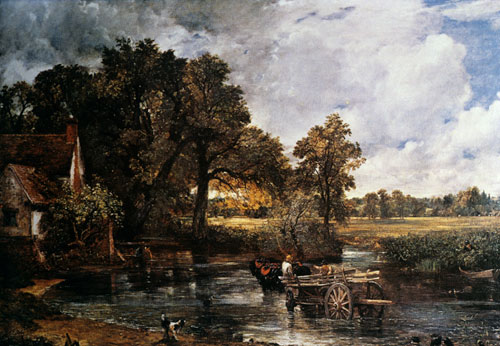 It was a sweet view—sweet to the eye and the mind. English verdure, English culture, English comfort, seen under a sun bright, without being oppressive. . . . It might be safely viewed with all its appendages of prosperity and beauty, its rich pastures, spreading flocks, orchard in blossom, and light column of smoke ascending. (360) The passage chiefly concerns natural (agri)culture rather than the creative cultural production or design examined in this essay, but the level of interdependence remained significant in the Regency period. Similarly, while the passage is superficially bereft of Orientalism, it engages with later nineteenth-century celebrations of British properties of geography and creativity. Austen’s few sentences in Emma summon up a privileged, bucolic ideal of a modern British society removed from uglier scenes of resource extraction, industrialization, urbanization, and expanding overseas commercial and racial exploitation.5 Such filtering out of the wider practices affecting the appearance of particular scenes has, rightly, become a part of current critical discourses.6 Austen’s Picturesque word-picture of agrarian stability—itself based partly on imported pictorial and literary modes—anticipates the pictorial representation of peaceable and plentiful English topographical and social culture by John Constable.7 In 1821 Constable exhibited “The Haywain” at the Royal Academy, depicting a smoking chimney on its main architectural feature (Willy Lot’s cottage) but omitting any visible indication of the ongoing social unrest in contemporary England.