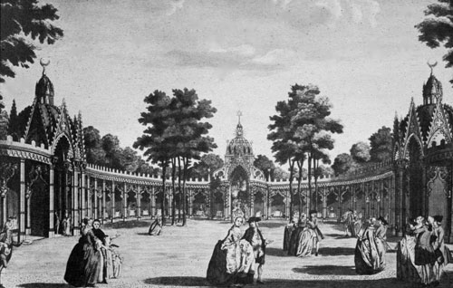 Looking backward in 1847-1848, William Thackeray set much of his novel—or narrative social satire—Vanity Fair around 1815 and the Battle of Waterloo. Arguably the most disparaged and pathetic character in the book is Joseph Sedley, the visiting Indian Nabob. What is more, the scene of his greatest humiliation is Vauxhall Gardens at London, built with Chinese and Gothic styled structures from 1751.13