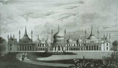 The contrary cultural gambit was greatly more evident in the lavish Indo-Saracenic bungalow that the Prince hired John Nash in 1815 to conjure over and through the simple French-style neoclassical villa built in the 1790s to the designs of Henry Holland. The Brighton Pavilion far surpassed such previous sallies into ancient Indian architectural culture as Sezincote, Gloucestershire, designed in 1804-1805 by Samuel Cockerell for a retired senior official of the East India Company.28