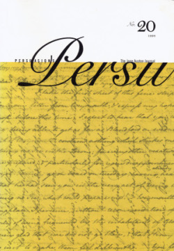 A meeting focusing on “Austen’s Legacy: Life, Love, & Laughter” provides the opportunity for many kinds of reexamination. My own thoughts on Jane Austen’s legacy turned, at least for a time, to the Jane Austen Society of North America: “‘It is such a happiness when good people get together . . . ,’” Miss Bates reminds us (175). One way good people—both members of JASNA and the larger Jane Austen community—get together is through JASNA’s journals, Persuasions and Persuasions On-Line. As Henry Austen wrote of his sister, “[S]he was formed for elegant and rational society, excelling in conversation as much as in composition” (5). So, too, Persuasions and Persuasions On-Line extend the conversation to the elegant and rational society of Janeites around the world.