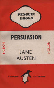 Penguin’s bright covers, with the reader on the go in mind, also recall the yellowbacks in the railway stalls a century earlier. Like the yellowback, the easily recognizable Penguin cover was spotted from a distance and distributed—though not in railway bookstalls but rather in machines called Penguincubaters. Rota records the installation of the first dispenser in 1937 “outside Collet’s bookshop in Charing Cross Road,” not far from the bustle of London public transportation (234). Penguin featured Austen’s novels in both its classic series and its fiction series, changing its stationary penguin cover logo to a dancing penguin on the 1943 paperback covers of Northanger Abbey and Persuasion.