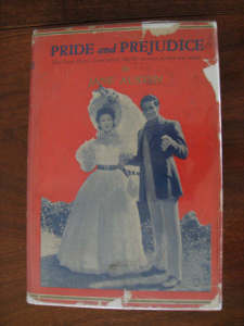 Beginning with Alexander Grosset and George Dunlap’s 1940 Motion Picture Edition of Pride and Prejudice, covers for Austen novels have featured film stars. The pictorial dust jacket of Grosset & Dunlap’s Pride and Prejudice shows a scene with Greer Garson and Laurence Olivier.