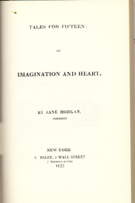 Cooper must have noticed well before 1838 that his list of worthy authors included only women. Ironically, in a century when women sought the disguise of a male pseudonym as the key to success, Cooper chose to go female in his first three attempts at literature. Fifteen was first, lavishly (and over-optimistically) advertised as being from the pen “of a Lady,” and when it finally debuted two years later, the title page attributed the Tales to “Jane Morgan.” It was not until the reprint of this little volume in 1841, after he was too well established to be questioned as a writer, that Cooper confessed his authorship of it.