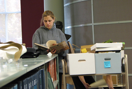 All three exhibits were gratifyingly successful in generating enthusiasm for their subject among the students and exhibit visitors. But how did the students themselves characterize what they had learned from putting together their displays of Austen’s legacy? Students in all three seminars had an identical reaction to the sheer amount of raw material on Austen that was made available to them: they were overwhelmed. But this reaction became an important “fact” for them as well as a foundation for their subsequent work. As one Skidmore student noted, the impact of seeing the vast numbers of editions, literary criticism, films, and what the student called “tschotchkes” laid out before her on day one “was the most powerful thing for me.” Several students emphasized that physically seeing and touching evidence of even a small part of Austen’s legacy made it palpably clear to them that Austen matters to many people—even to those who, as another student noted in wonder, aren’t necessarily readers of Austen’s works. “It brings home how pervasive [she is], how loved,” said a student from Skidmore. “She’s just a big part of everyday life for people.”