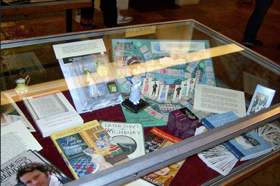 Indeed, as their exhibit cases came together, students began to speak more and more cogently about the research process and what a good research project in the field of literature entails. Not only did they have to organize and present the material for their cases as they would if they were writing a paper, they had to act as true literary scholars as well. One Skidmore student, who admitted having signed up for the seminar simply to fulfill a requirement, spoke of his excitement at his realization that there were so many “radical” and different ways in which one could interpret Austen’s legacy. The critical essays that he’d read in class had helped him expand his ideas, but he saw the design of his exhibit case as a personal opportunity to move beyond the comfort zone in which Austen is sometimes viewed to enjoy instead being “able to look at her in all the different ways you can.” Interpreting Austen for others became what he called a “liberating” experience, one that opened his eyes to the possibility that literary criticism itself can be liberating when it re-examines received ideas. It should be noted that this same student continued to describe, with appreciation, the exhibit as a whole as a “haven” for everyone in the class as well as its visitors. In other words, it seemed to provide a safe place in which even “radical” questions about Austen could arise, because within that place it was obvious that Austen’s legacy is broad enough to support many different interpretations and responses. Thus the exhibit space gave students a useful model for the expansive, virtual space that literary criticism itself provides for discussion of an author’s works.