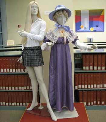 Students at Union reported several additional effects of spending so much time examining Austen’s legacy. Outfitting their exhibit manikins in matching Regency (“Emma”) and modern (“Clueless” or “Cher”) attire helped them to inhabit Austen’s world in unexpected ways (Fig. 7). Drawing upon their own wardrobes to outfit “Cher,” students reported being stunned to realize that the tale of the young woman who was their imaginary contemporary had roots stretching back to 1816. For another student, it was the Regency clothing that allowed her to enter more imaginatively into the novels. “I think the period clothing we had [was] the most memorable for me,” she wrote. “It strikes me now that in reading Austen, one really participates in the novel itself and becomes entirely immersed in Austen’s world. To be able to get up close to the clothing worn by people of the time makes it that much easier to imagine their reality.”