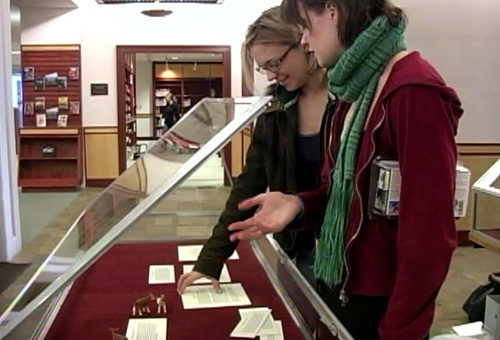 More important, the constant exhibit traffic confirmed that the students’ work had value and meaning outside classroom walls. The crowded exhibit openings in particular gave students, as they described it, “a sense of pride,” and they “loved the way [the openings] brought all kinds of people on and off campus together.” The openings also put students on their professional mettle, as they were challenged to answer questions from visitors about the materials in their exhibit cases, about their exhibit themes, and about Austen herself.
