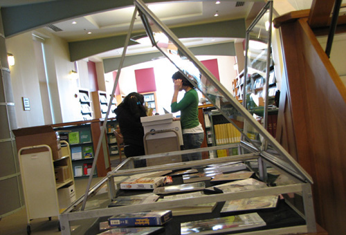 Figures 3 and 4. Skidmore exhibit case featuring films and Austen industry.
