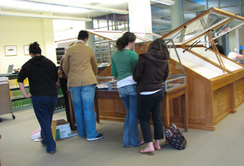 Students described two additional kinds of learning beyond their typical classroom experience. First, they became as engaged with each other as they were with the Austen materials. Many students were daunted by the thought as well as the reality of working in small groups to come up with common themes and make decisions, but for the most part they loved it. Several of them noted that English majors, unlike those in other disciplines, rarely work on joint projects, so the exhibit project offered “a great opportunity to take a class outside the classroom.” One student said joyfully that it felt like being “in a glorified book club every day”; others relished the continual group conversations and interactions that combined to create “a different learning style that everyone got a lot from”; another liked the intensity of “many minds working together on an abstract level” to generate the “narratives” for their cases and the coherence for the exhibit.