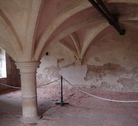 But Catherine dreams of cloisters, and at Lacock Abbey we get cloisters that could have come straight from a gothic novel. These are cloisters of the remaining, original abbey buildings, and their function was to connect various parts of the Abbey. Off the cloisters are various rooms, such as The Chaplains’ Room and the Sacristy. It was here that the vestments and plate used in masses would have been kept, and it is thought that on occasions, mass would have been said here (Garnett 30). The warming room was so called because at one time this was the only room with a fireplace and the nuns would come here to warm themselves (Garnett 31). These are indeed the type of rooms that Catherine dreamt of visiting.