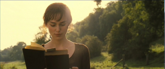 Not only is the very idea of repetition used to mark Austen’s umpteenth return to the screen, but the film also plays on its derivative nature by both adopting and defying some prevailing filmic conventions. Indeed, Wright’s Pride & Prejudice highlights the differences from its source text from the very beginning.1 After a long shot of the English countryside at dawn, the camera focuses on a close-up of Elizabeth Bennet (Keira Knightley) reading a book. Opening a film adapted from a novel with the image of a book—often the transposed text itself—has been a common device since David Lean’s Great Expectations, a film Wright acknowledges as the source for a subsequent shot during the ball at Netherfield.2 The ironic smile on Elizabeth’s face adds to the impression that the novel in question could be by Jane Austen, possibly Pride and Prejudice itself.3 However, the book motif here produces a divergent effect. The camera shows that Elizabeth is reading the last pages of the book; therefore, the very act of shutting it and the words “The End” clearly visible in the close-up indicate not so much the aspiration to fidelity emphasized in Lean’s adaptation as the distance from Jane Austen’s text.