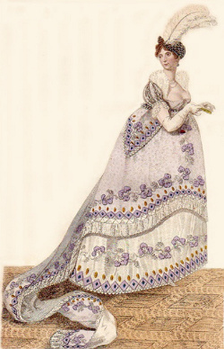 2. “The Marchioness of Townsend in her full Court Dress as worn by her Ladyship on the Queen’s Birth Day 1806,” from La Belle Assemblée (Mar. 1806). This image is from the collection of Candice Hern (http://www.candicehern.com/) and used by permission.