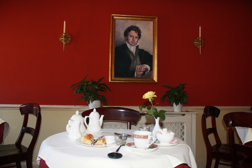 Sales has discussed how Austen’s world has been marketed as a heritage product by the television industry that has produced “nostalgic visual images” (Jane Austen 19): the Regency Tea Room in the Jane Austen Centre capitalizes in various ways on the phenomenal success of the 1995 BBC adaptation of Pride and Prejudice starring Colin Firth as Darcy and Jennifer Ehle as Elizabeth Bennet. A large portrait of Colin Firth as the Darcy who fuelled Darcymania hangs in the Regency Tea Room.19