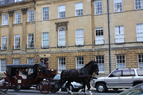 When Lady Russell . . . was entering Bath on a wet afternoon, and driving through the long course of streets from the Old Bridge to Camden-place, amidst the dash of other carriages, the heavy rumble of carts and drays, the bawling of newsmen, muffin-men and milk-men, and the ceaseless clink of pattens, she made no complaint. No, these were noises which belonged to the winter pleasures; her spirits rose under their influence. . . .