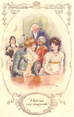 2Other uses of the word in connection with this second ball are “Till Elizabeth entered the drawing-room at Netherfield and looked in vain for Mr. Wickham among the cluster of red coats there assembled, a doubt of his being present had never occurred to her” (89); when she dances with Mr. Darcy, she says to him, “‘[Y]ou ought to make some kind of remark on the size of the room, or the number of couples’” (91); when Mr. Collins clings to Elizabeth, “[i]n vain did she entreat him to stand up with somebody else, and offer to introduce him to any young lady in the room” (102); finally Wickham explains that he stayed away from the ball because he thought “‘that I had better not meet Mr. Darcy;—that to be in the same room, the same party with him for so many hours together, might be more than I could bear, and that scenes might arise unpleasant to more than myself’” (115).
