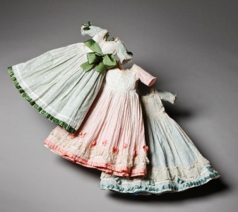 ![]() Figure 9. Three embroidered Indian cotton frocks over silk slips (ca. 1775). |