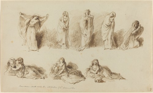 Figure 12. Pietro Antonio Novelli. The Attitudes of Lady Hamilton (c. 1791). Pen and brown ink on laid paper. National Gallery of Art, Washington, DC. Ailsa Mellon Bruce Fund, 1988.14.1.