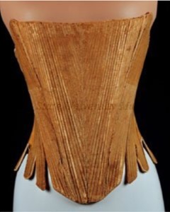 ![]() Figure 2. Quilted cotton, tan leather, baleen boning (c. 1770–1790). |