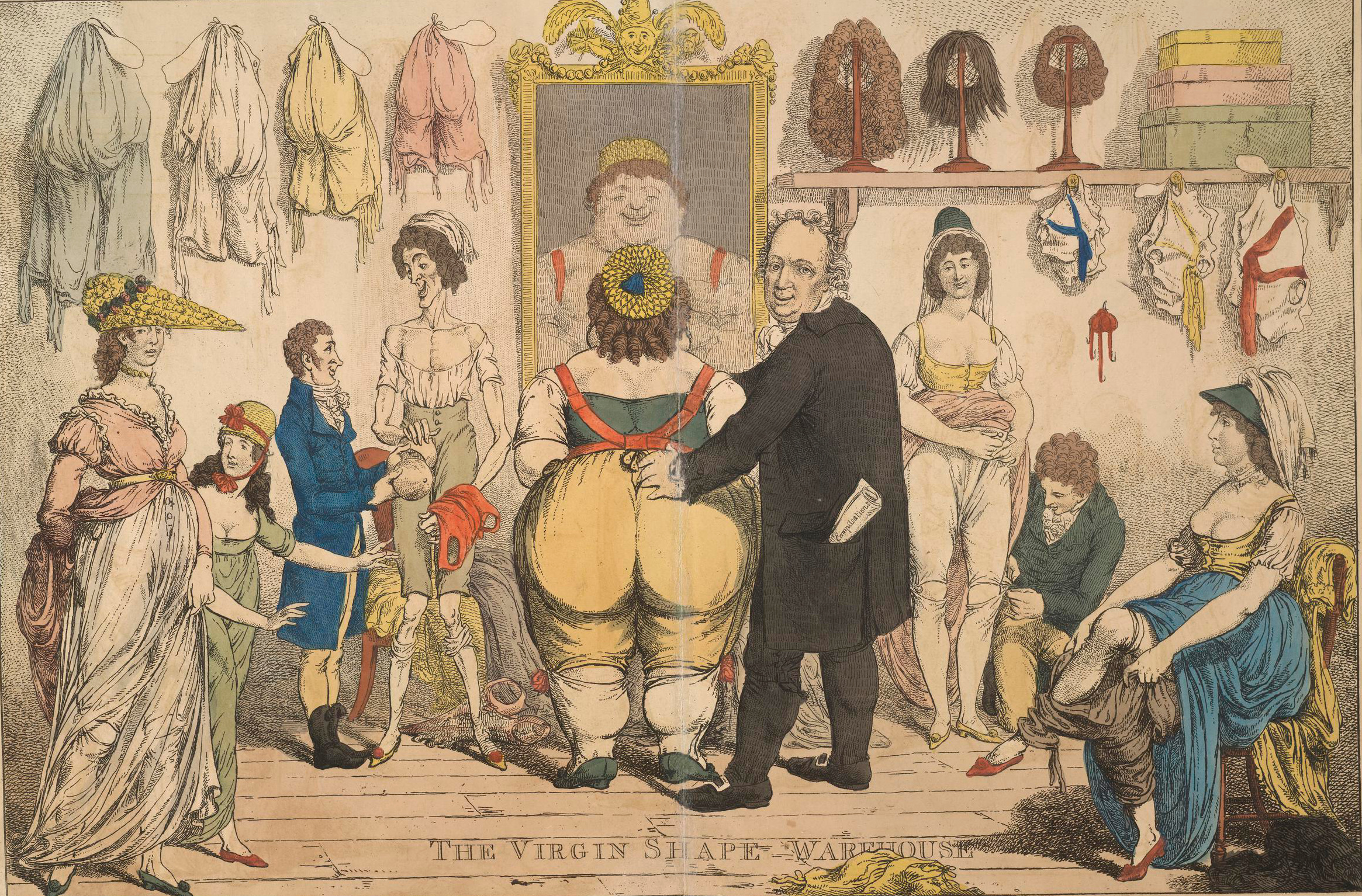 Figure 25. After Charles Ansell (?). The Virgin Shape Warehouse (S.W. Fores, 1799). Hand-colored etching. © The Trustees of the British Museum.