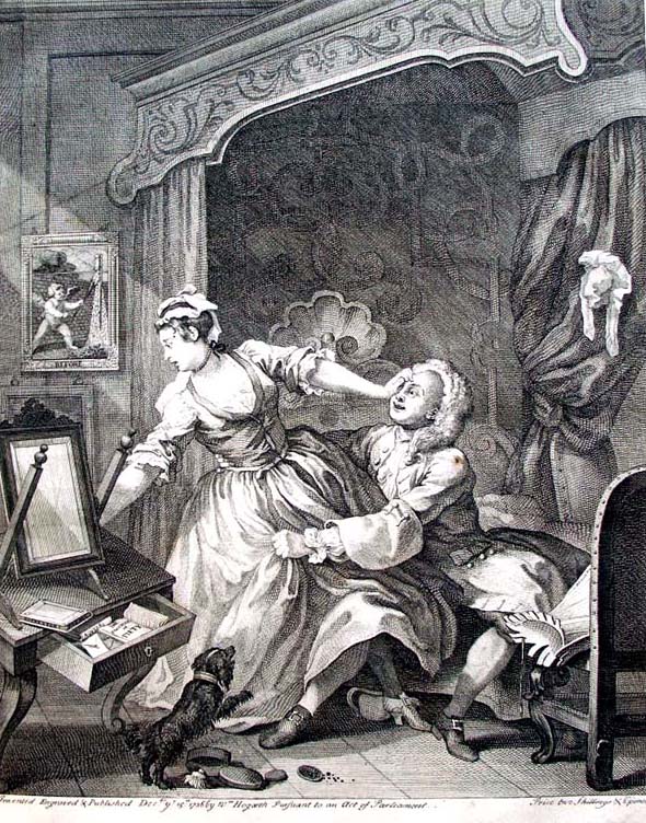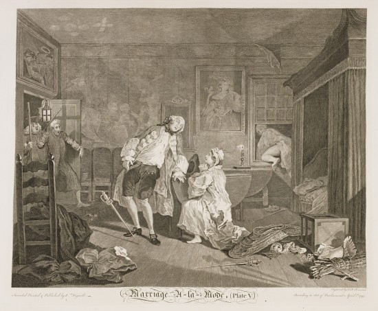 Figure 30. Simon Francis Ravenet after William Hogarth. Marriage a-la-Mode, Plate V (1745). Metropolitan Museum of Art, Gift of Sarah Lazarus, 1891, 91.1.111.