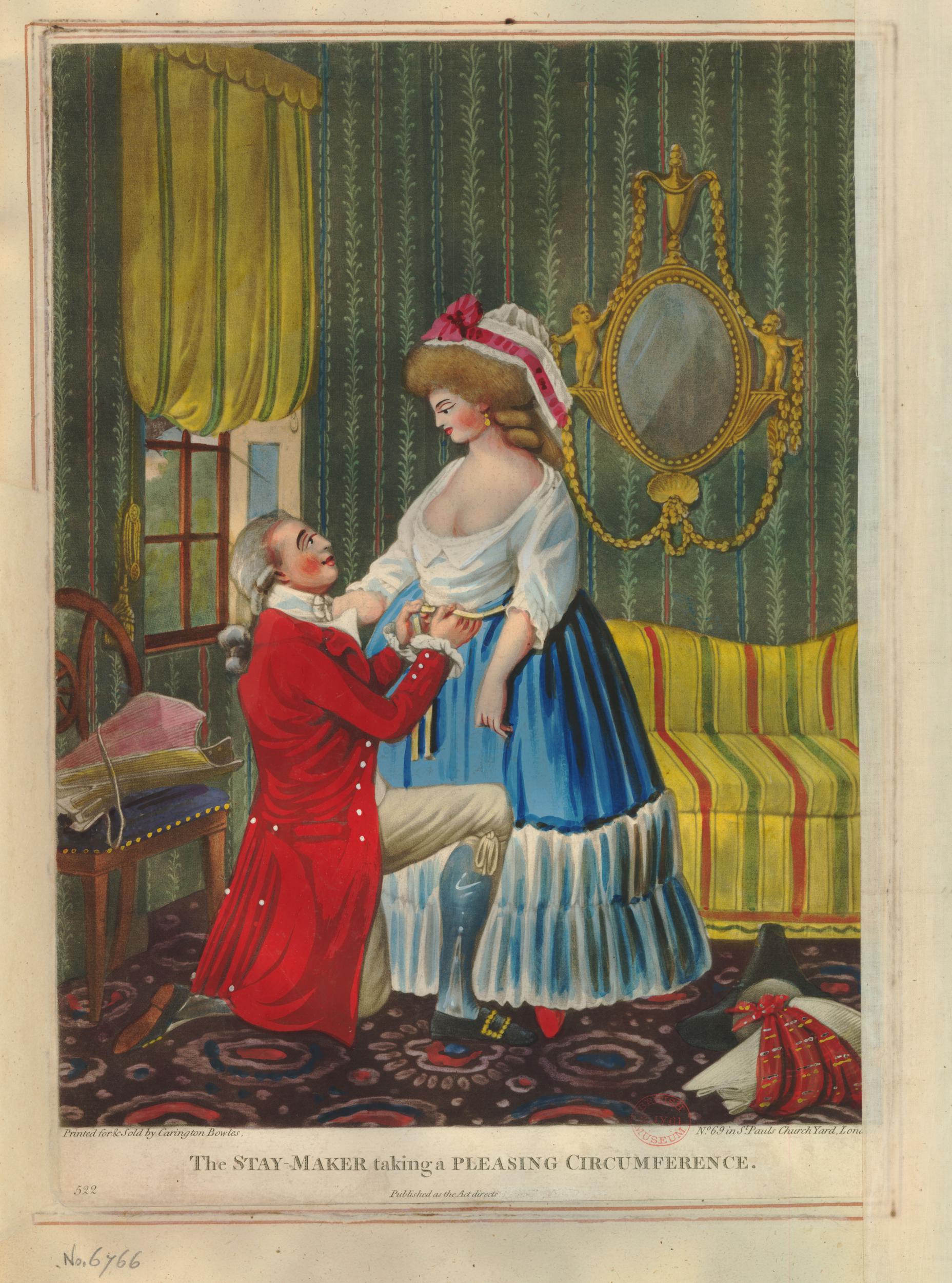 Figure 31. The Stay-Maker Taking a Pleasing Circumference (Carington Bowles, 1784). Hand-colored mezzotint. © The Trustees of the British Museum.