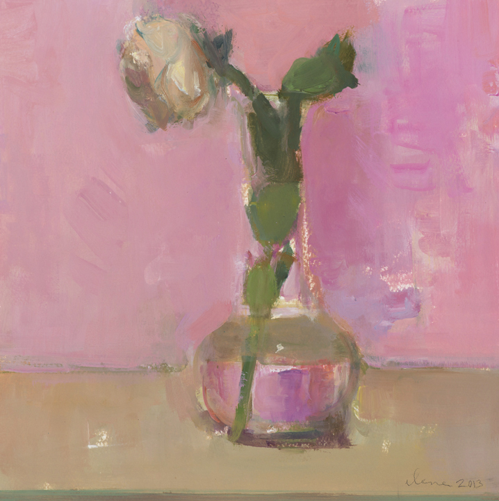 I always loved a rose that is old-fashioned, bulbous, almost round in shape with an intricate petal design of a very beautiful almost washed out color—vanilla though slightly pink. And that is the rose that I have chosen for many of my stills. In the Oakland Rose Garden, each rose has a tiny plaque with [its assigned] name. Imagine my wonderment when the rose I choose out of the whole garden is named after Jane Austen. . . . Naturally the titles for my paintings came accordingly.