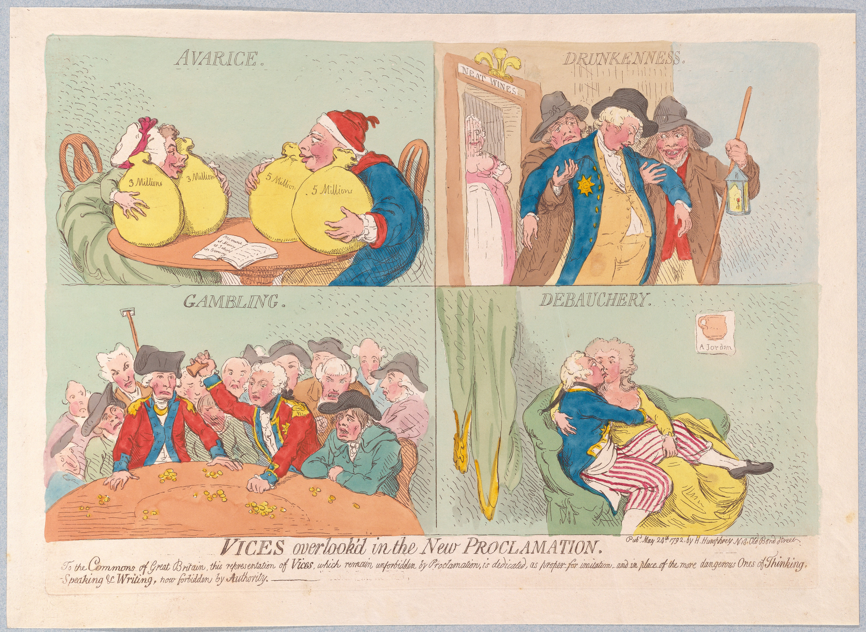 Vices Overlook’d in the New Proclamation (1792) by James Gillray.