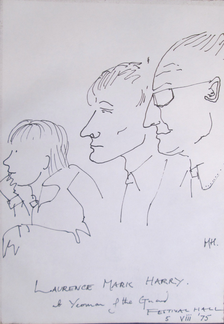 - Figure 3. Sketch of Harry Burke, Mark Hassall, and a young family friend, by Mark Hassall, August 1975. Courtesy Goucher College Special Collections & Archives.