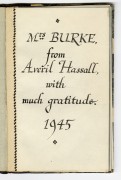 ![]() Figure 9. Hand-calligraphed title page of Averil Hassall’s handbound book |