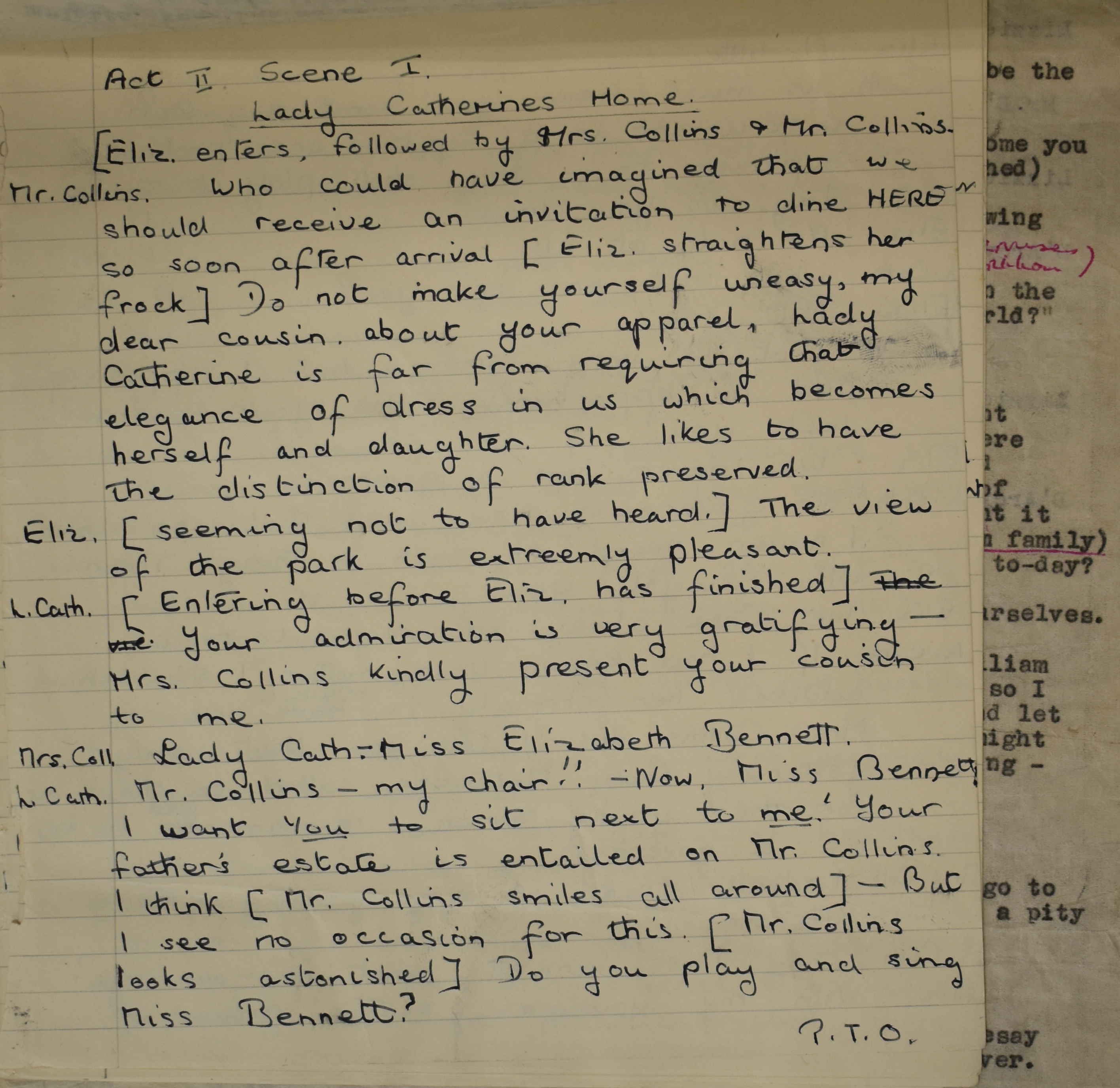 ![]() Figure 12. Script of Holton Park School Pride and Prejudice (1951), copied by Jean Durant |