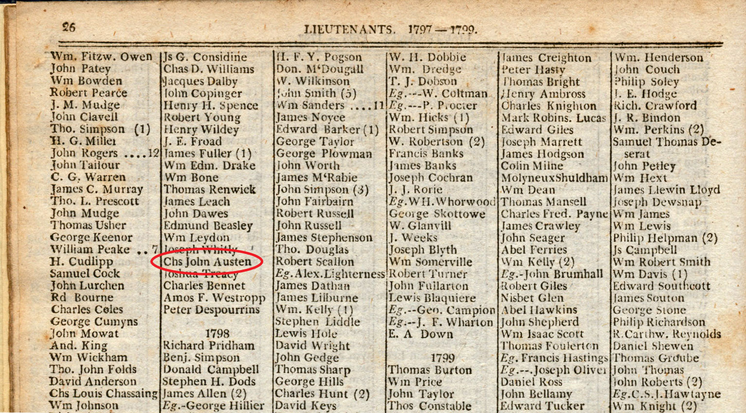 In the same letter from the Admiral came the news that “Lieut. Charles John Austen is removed to the Tamer Frigate.”