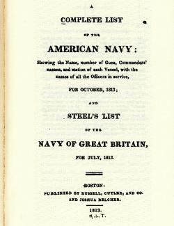 Patronage, however, was not forthcoming, and no other detailed lists of this kind were published. In August 1813 a Senate resolution placed American military lists under official control, and annual naval registers were issued instead, comprising little more than officers’ names and order of seniority and a list of ships. Steel’s list, however, conveying “all the information respecting the British Navy” continued to be of interest. Newspapers such as the Boston Gazette, the National Intelligencer, and Hezekiah Niles’s Baltimore Weekly Register often gleaned material from Steel for their articles and, like English newspapers, copied reports on key naval events from each other.