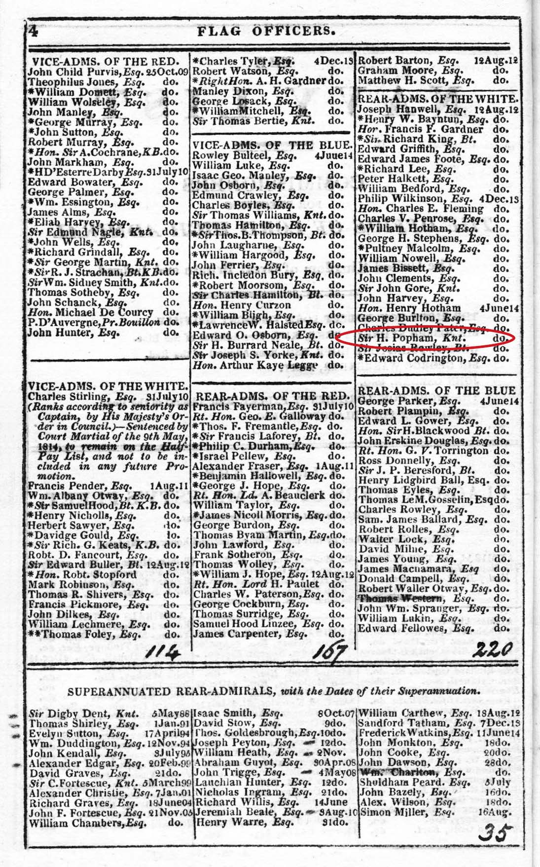 The same sources suggest a telling connection between the fictional Croft and Wentworth and one of Jane Austen’s naval heroes, Sir Home Riggs Popham. The Chronicle (17: 209–42) carried a thirty-three page report of the five-day court martial in Portsmouth in March 1807, where Captain Popham was severely reprimanded for removing his squadron from its station without orders from the Admiralty. His reasons were judged sound by a majority of the public, and Jane Austen composed a poem in honor of this “Gallant Commander” with qualities of “Promptitude, Vigour, Success” (Later Manuscripts 246), that “true naval alertness” (P 51) embodied in the conduct of Admiral Croft and his wife on shore and in Frederick Wentworth’s self-determining exertions at sea: “His genius and ardour had seemed to foresee and to command his prosperous path” (32). Those ranged against Popham accused him of rash adventuring and spoke of his character with the same distrust that Lady Russell harboured for Wentworth’s “dangerous” self-assurance: “He was brilliant, he was headstrong” (29). HMS Asp, the name of Wentworth’s first ship, had been part of Popham’s squadron in 1798, and in the December 1814 Navy List, Popham appears, as would Admiral Croft in Anne Elliot’s copy, among the Rear-Admirals of the White.1