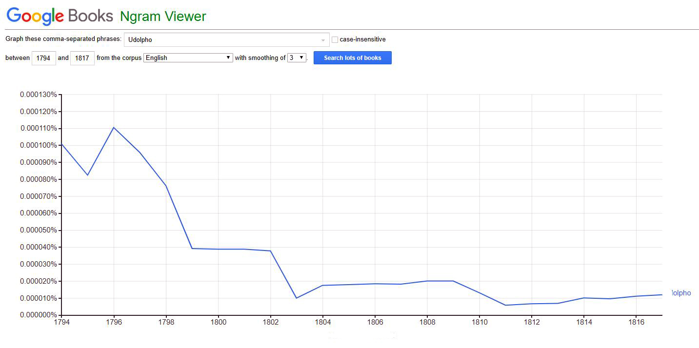 Relative popularity of the word Udolpho from 1794 to 1817 (Google Ngram Viewer)