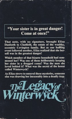 One is the little-known fact that beyond the pages of the novel—and part of its intriguing afterlife—is the fictional backstory of heroine Catherine Morland. In the 1970s, she became a gothic novelist! Morland’s first effort as an author was appropriately titled Castle Black (1971), which uses as its tagline, “Was her own unanswered past a part of their tragic family history—or was she just a pawn in their deadly game?” That book joined a late twentieth-century vogue for gothic fiction in mass market paperbacks. As one scholar remarked of this era’s gothic revival: it “promised [women readers] that the suburban castle, with its mistress in compassionate control, really could transform and rule the land” (Paige 22). Catherine Morland turned author a second time, in 1976, with The Legacy of Winterwyck, described as “A gothic novel of suspense.” Its cover features this question and answer: “Was her brother-in-law’s death an accident . . . ? The terrible secret is revealed in . . .”