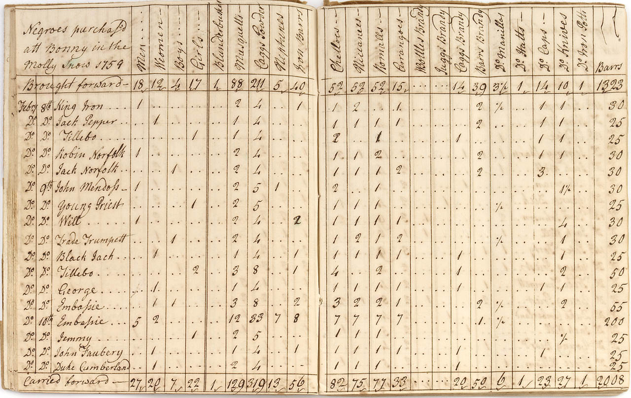 An account book of the slave ship Molly at Bonny Island. Courtesy of Royal Museums Greenwich.