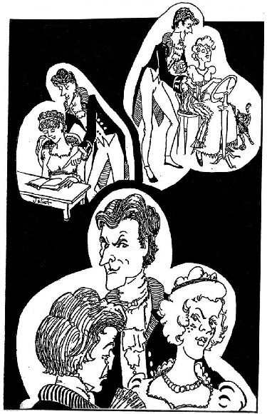 Mr E. “What a charming design, Miss Elliot.” Pause to admire. “I have always observed that there can be nothing more graceful and soothing than the poise and motion of a lady’s wrists as she draws a needle through the fabric. May I hand you the silks? What is to be next – the apricot or the gold?” He advances to sit by Miss Anne. A gesture to her novel and a few murmured remarks on the characters, deploring the villainous artifice of Mr Monckton and exchanging views on the motives of the Delviles: “. . . arrogant, certainly, but do you not agree that a consciousness of centuries of birth, breeding and responsibility must to some degree excuse – or at least explain – the family’s pride and prejudice? More tolerable surely, my dear cousin, than the insinuating aspirations to high connexion of those of lower station . . .?” A meaning glance across the room. He strolls over to the card-table, taking a stance behind Sir Walter’s chair in time to offer congratulations on a winning hand, and simultaneously exchange warm conspiratorial smiles with Mrs Clay . . . (The performance continues, and may be seen at least three evenings in a week. I recommend it as a spectacle, my dear Wallis. Much cheaper than a box at the Royal to see Mr Macready play Romeo.) As a military man of some experience, you will recognize my strategy and applaud my tactics: to keep Miss Elliot in anticipation of an eventual declaration, to convince Miss Anne of the sincerity of my attraction, and to allay the jealous fears of Mrs Clay with gentlemanly disclaimers and protestations. And all this under the aquiline nose of Sir Walter, who never sees beyond his own reflection. I must concede, however, that the arrival of Miss Anne Elliot in Bath has somewhat complicated the simplicity of my original design. Who would have thought that the glances of those fine dark eyes at Lyme could have so disarmed and distracted